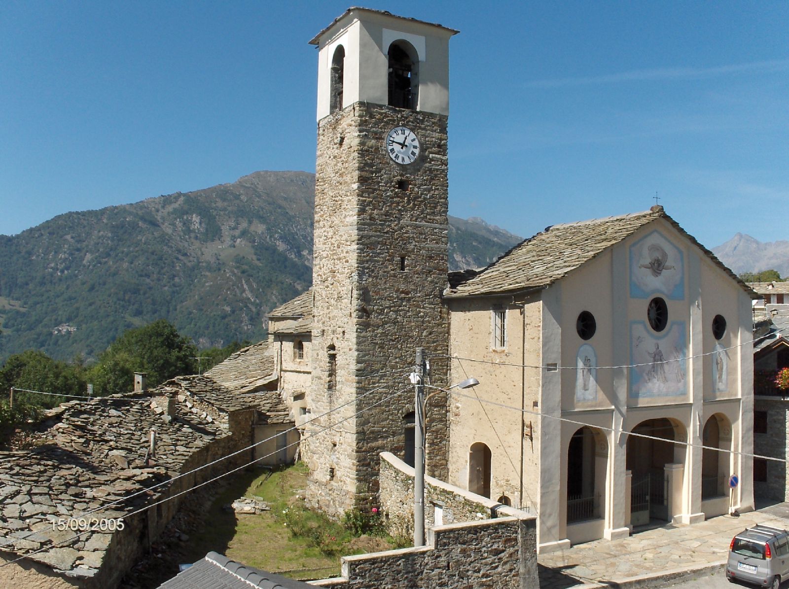 L'accogliente facciata e il superbo campanile in pietra, di epoca medievale, e dal quale si gode di un ottimo panorama, sono stati restaurati, grazie all'interessamento del vicario, don Fiorenzo Rastello.